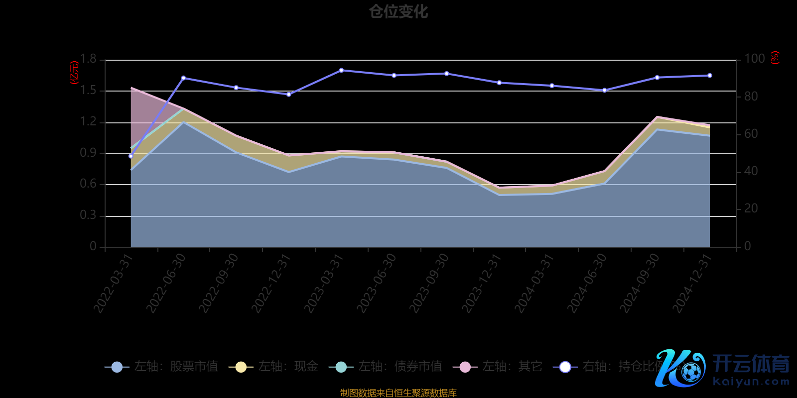 据按期敷陈数据统计,近三年平均股票仓位为85.3%,同类平均为83.34%。2023年一季度末基金达到94.33%的最高仓位,2022年一季度末最低,为48.55%。