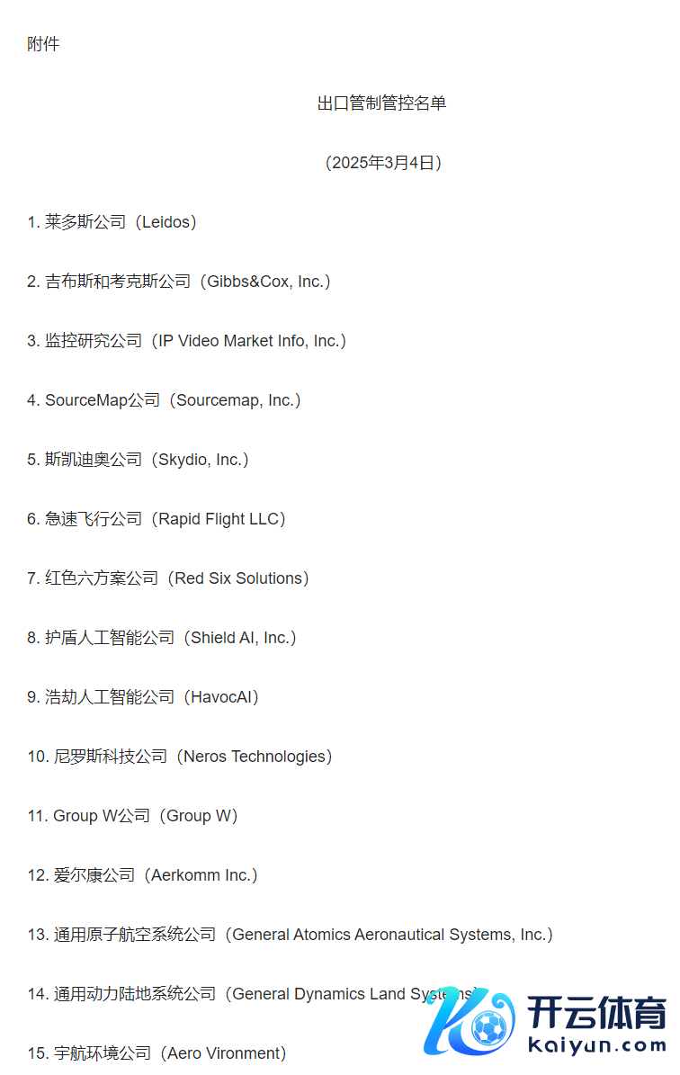 商务部:说明《中华东谈主民共和国出口经管法》和《中华东谈主民共和国两用物项出口经管条例》等法律法例相干法则,为珍视国度安全和利益,履行防扩散等海外义务,决定将莱多斯公司等15家好意思国实体列入出口经管管控名单万博体育,并接管以下纪律: